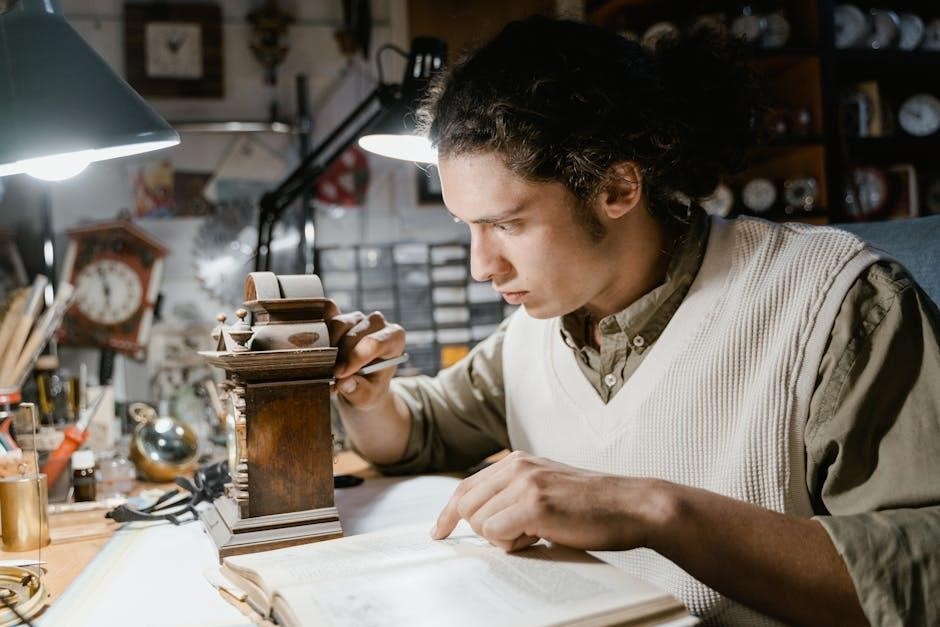 The Rogue Clock manual PDF details essential maintenance procedures for longevity. Regular cleaning with a soft, dry cloth is recommended to preserve the display’s clarity and prevent dust buildup. Avoid abrasive cleaners or solvents, as these can damage the surface. The manual also outlines battery replacement steps, emphasizing the correct battery type and polarity.